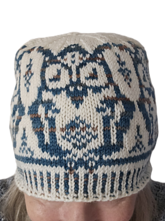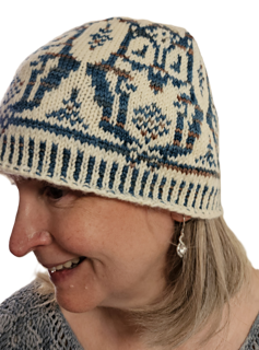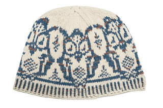 Oule is a cozy stranded colourwork beanie adorned with a repeating owl motif that circles the hat over corrugated ribbing. Worked seamlessly in the round, this design uses two contrasting colours of 4-ply fingering-weight sock yarn to let the owls truly take flight.