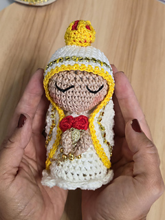 - Cotton yarn in the colors: white, skin color, red and gold.