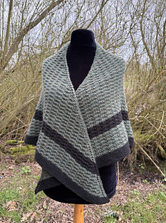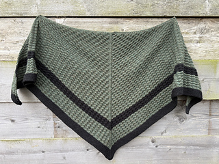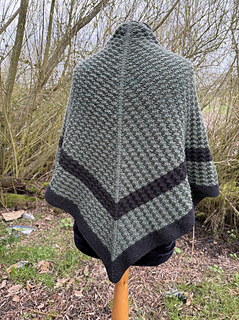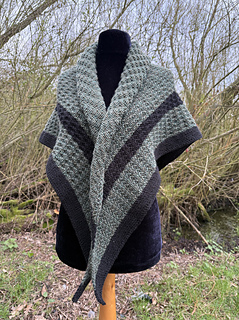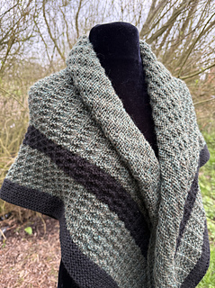 It is worked top down in double knit weight yarn in two colours with a textured simple pattern for the body of the shawl.