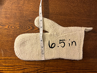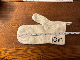 Wash and dry your finished oven mit a minimum of 3 times before use to ensure the oven mit shrinks to final size, and becomes dense enough to protect from heat