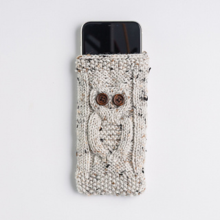 This cellphone cozy is worked seamlessly in the round from the bottom up. A loop closure is worked separately and sewn inside the center back. Buttons are sewn on for owl eyes and loop closure.