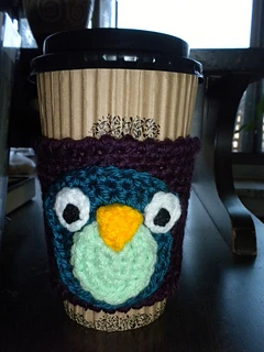 Finished size: Fits around a paper coffee cup. I used a Starbucks cup as a measure of the cup it fits.
