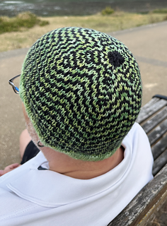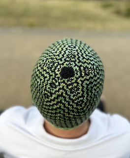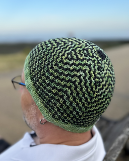 Ozzy is a beanie style hat featuring an eye-catching colourwork pattern that is created with knit and slipped stitches so that you are only ever working with one colour yarn at a time.
