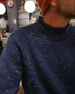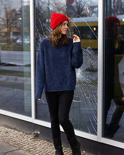 The dark blue P1 Sweater is knitted in ‚Hamelton Tweed 1‘ by BC Garn in color 01.