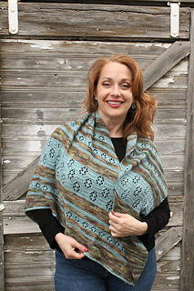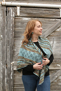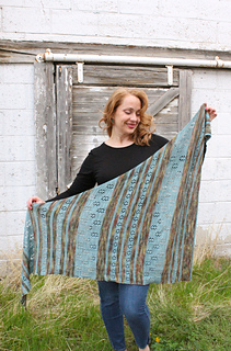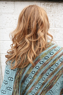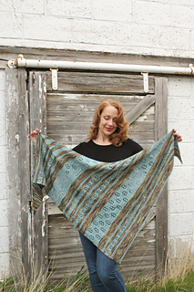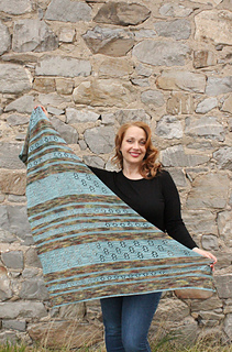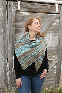 This piece begins with just two stitches and increases at the end of every RS row until almost every last bit of yarn is used. After that, a strong blocking transforms it into a graceful, asymmetrical triangular shawl.