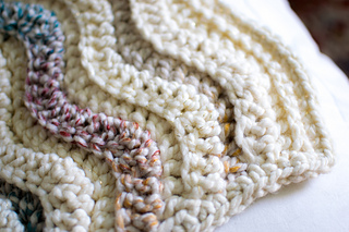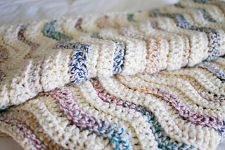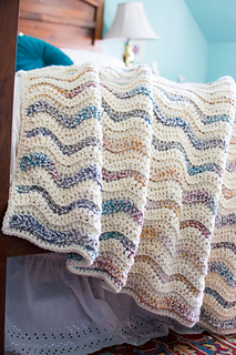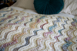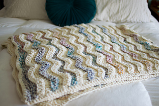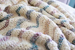 The Painted Snowdrift Throw is a cozy, textured blanket inspired by the beauty of winter’s quiet landscapes, accented with soft strokes of color and shimmer. Featuring a ribbed ripple stitch, this design combines a creamy white base with subtle gold metallic highlights and a variegated yarn that resembles paint strokes on a canvas. Perfect for adding warmth to any space, this throw is easy to make and it is stunning to display.