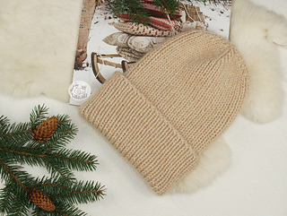 The beanie is worked in 1x1 ribbing and offers a variety of smaller or larger sizes.