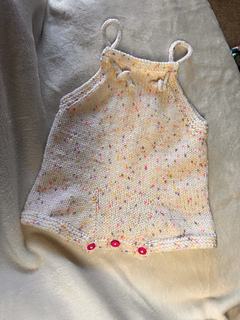 This playsuit is knitted in the round and in stockinette stitch, from the bottom up.