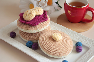 The pattern includes the description of pancakes, topping, berries, banana slice and butter pat.