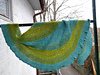 The shawl is somehow crescent and a little bit asymmetrical, with Brioche elements and textured patterns, slghtly three dimensional like crumpled paper, short rows and an I-cord edge.