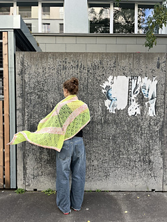 It is the perfect Netflix knit, as you don’t have to count too often or concentrate too much: the lace is easy to remember and the stockinette bands provide the right amount of relaxation.