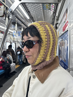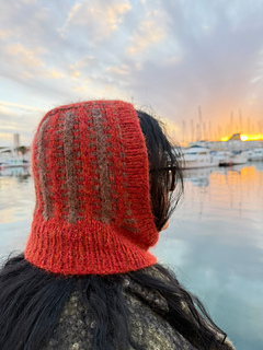 Parallax refers the apparent shift in the position of an object whenviewed from different angles, which the Parallax Hood makes methink of because of the slip stitch stripes and how they seem to beupfront of the hood.