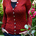 A worsted or heavy dk weight cardigan knit top down, in rounds, with waist pattern and two different styles of sleeves.