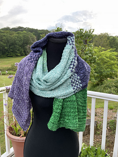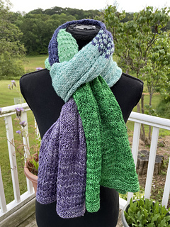 The Official The Holidays Are Murder Knit-Along pattern for 2025, this is a five color block scarf/shawl for the advanced beginner knitter. This pattern features lightly textured sections and easy colorwork and is perfect for gradient kits.