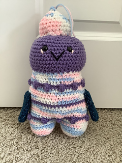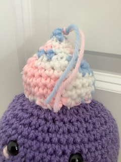 Warning! I used leftover skeins of yarn, so I don’t know exactly how much yarn I used. This is my first pattern that I have made. This little creation of mine is an alien type of thing. If the link does not work, leave a comment!