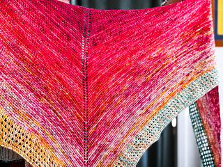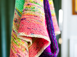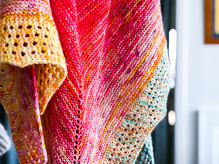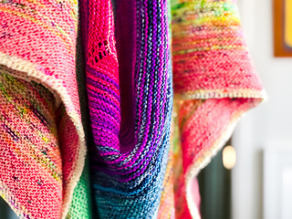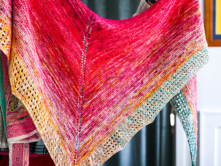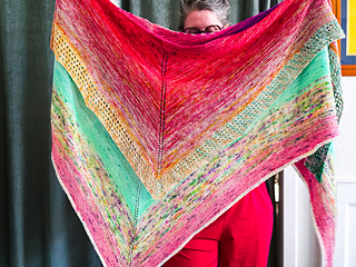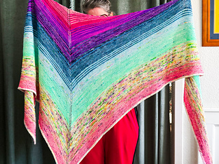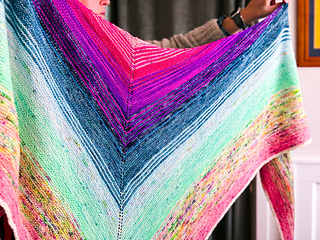 Party Garty : A design-your-own striped asymmetrical triangle-shaped shawl knit from the top down, using garter stitch as the backdrop for super fun stripes and color blending with 2 bind off options.
