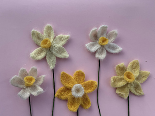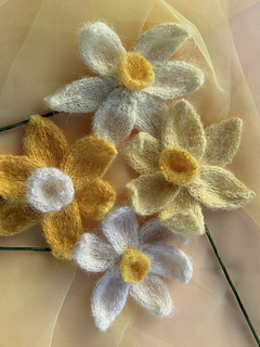 Et perfekt påske projekt, hvor du kan bruge alle de små garn rester af hvide, gule og orange og trylle påskeliljerne frem mellem dine henderne :)