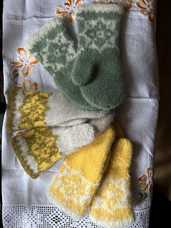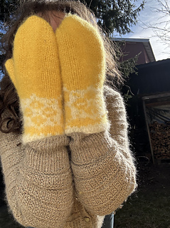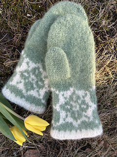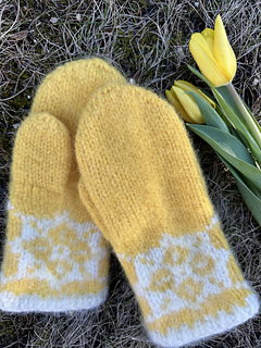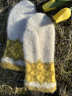 Påskeliljevott er strikkeoppskrift på en nydelig, tovet ullvott med flott mønsterbord.