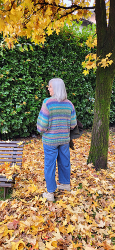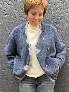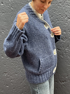 The cardigan is intended for an oversized fit with approx. 15-20 cm 5.9-7.9 inches of positive ease, meaning it is designed to be about 15-20 cm 5.9-7.9 inches larger in circumference than your bust measurement, depending on preference.