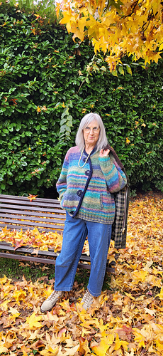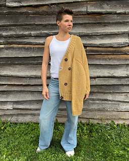 The cardigan is intended for an oversized fit with approx. 15-20 cm 5.9-7.9 inches of positive ease, meaning it is designed to be about 15-20 cm 5.9-7.9 inches larger in circumference than your bust measurement, depending on preference.