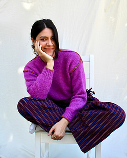 I wanted a sweatshirt-type sweater that made me feel fancy. Something so simple and comfortable but with a pizzazz factor. Something that made me feel put together and the coziest I’ve ever been. And so, the pathways sweater was born! Designed with a loose gauge and suri plus fingering weight to make a fuzzy, flowy fabric and intentional shaping and seam lines to add a professionally-tailored look, this sweater is made for a casual brunch, coffee chats, and whatever elevated cozy events life throws at you!