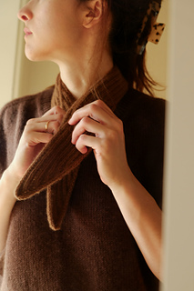 This scarf is knit flat in one piece from one tip to the other in 2 x 2 rib. Originally created to use exactly one ball of cashmere yarn, it’s perfect for MOCHI slipover leftovers – and to wear with it, like a piece of jewelry.
