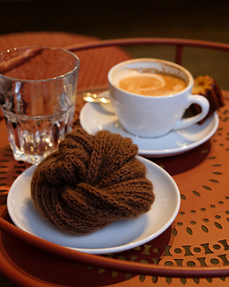 The scarf in the pictures was knit in the colorway “sudan”. I’m wearing it with my MOCHI slipover, which is knit in the same yarn.