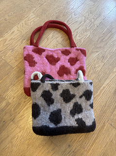 A playful felted bag featuring a cheerful cow motif that is sure to bring a smile.