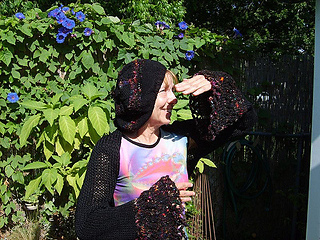 Did a bit of “Condo” knitting using bigger needles at the end of the sleeve and across the back to add shape.
