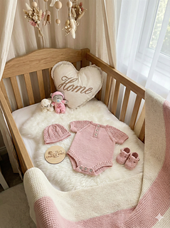 This beautiful romper set is knitted from the top down on single-pointed needles.