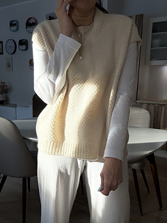 The Pearl Texture Vest is a classic slipover and it is perfect for layering or for wearing alone. Featuring a simple and a slightly oversized look, it will never be out of trend. It could be knitted both from cotton or wool yarn. You will want to wear it in the chilly weather year over year.