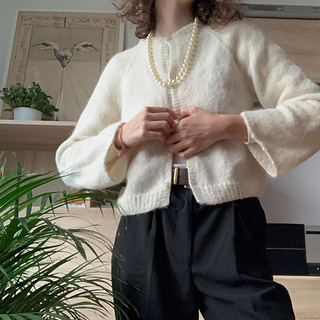 The pearly in Pink cardigan is designed to have approx. 7-10 cm (2¾-4 inches) of positive ease, meaning it is designed to be 7-10 cm (2¾-4 inches) larger in circumference than your bust measurement.