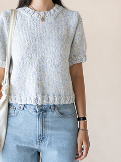This is the same design as the Butter6 Bottom-Up Basic Short-Sleeve Sweater but made with a different yarn, now expanded to 7 sizes (XS–3XL).