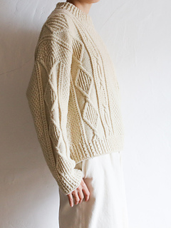 ですが、繊細なアラン模様が少しずつ浮かび上がってくる過程はとても楽しく、完成が近づくにつれて大きな達成感を味わえるはずです。模様編みにじっくり取り組むのがお好きな方に、ぜひおすすめしたい一着です。