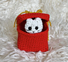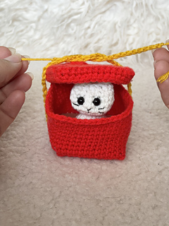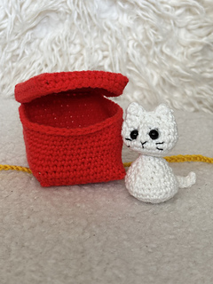 This adorable kitty is 8cm wide x 10cm long with a 2.5mm hook and 4 ply yarn. You can make it larger by changing the hook size and yarn. Although the pattern uses the colours white, red and gold, you can use any colour scheme you like.