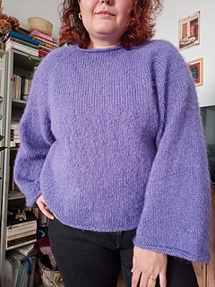 The Pehmo Sweater is knitted top down with raglan increases. The neck is shaped with short rows for a better fit. I’ve used German short rows but you can use the method you prefer. There are no ribbed cuffs, hem or neckband, so all the edges curl up a little bit due to the stockinette stitch. Take that into consideration when deciding the length of the hem and sleeves :)
