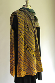 Once the center has reached its full width, half the stitches are put on hold while Side 1 is worked on the bias (increases on one edge and decreases on the other.
