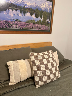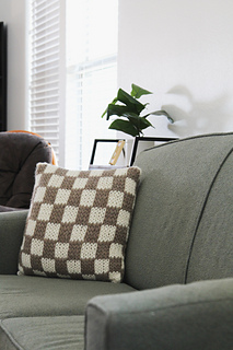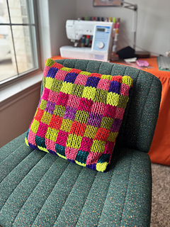The pillow is knit in the round, bottom up, and then sewed together at the end.