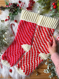 Create a beautiful stocking that can be used for years to come. The Peppermint Stocking is a delightful festive make which works up quickly. It’s the perfect way to spend a chilly December afternoon, with a Christmas movie.