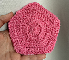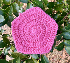 There are many many ways to crochet a pentagon. This is just the way I make mine & wanted to share. You can make many different projects with this basic shape! It’s a good one to have in your back pocket!