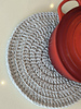 The pattern guides you to create a potholder (or trivet) of approx. 30cm in diameter, crocheted in only 7 rounds from the centre outwards.