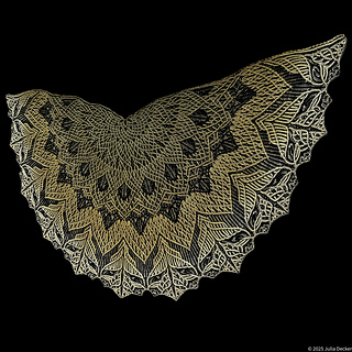 The Perihelion Shawl is named for the changeable beauty of the surface of our star and is knit from the top down and center out, using the pi formula developed by Elizabeth Zimmerman.