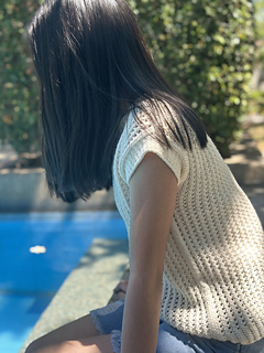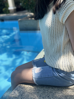 The choice of a round U-neckline came from the desire to have a slightly deeper round neckline, without being too low, making the top fresher and more comfortable to wear even on the hottest days.