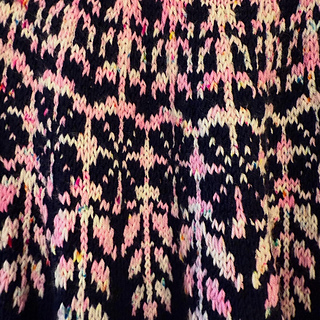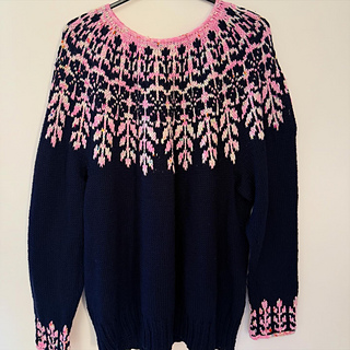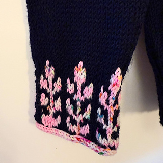 Finally, the sleeves are knit in the round and decreased to the wrist with some more stranded/fair isle colourwork and finished with an i-cord edge.