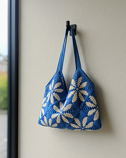 Sometimes a crochet project comes to life simply because color and shape come together perfectly — and that’s exactly how the Petal Mosaic Bag was born. The fresh blue combined with soft floral shapes creates a stylish, playful, and timeless effect that immediately catches the eye.