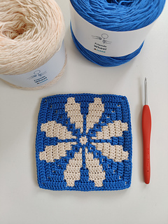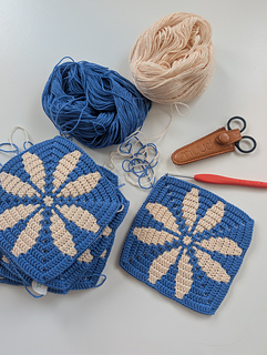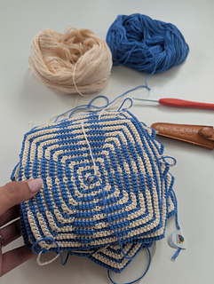 Yarn: Hobbii Friends Wheel (55% cotton, 45% acrylic) — colors 1x French Blue (84) and 1x Cream (04)