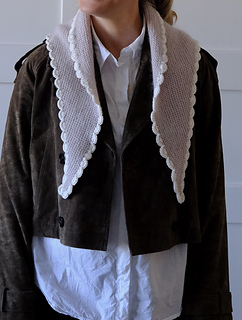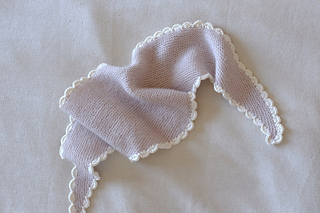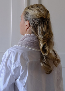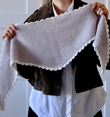50 g Knitting for Olive Merino (100 % merino - 250 m / 273 yds / 50g), held together with 25 Majo Garn Pearl Mohair (70 % super kid mohair, 30 % mulberry silk - 210 m / 230 yds / 25 g) or 210 m / 230 yds of fingering weight yarn held together with 210 m / 230 yds of lace weight yarn. For the scalloped edge you need 60 m / 65 yds of yarn.