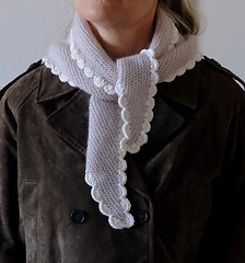 The crocheted scalloped edge can be worked in a contrasting yarn for a subtle decorative highlight, or in the same yarn as the scarf for a more cohesive, understated finish. The pattern includes a step-by-step tutorial video for the crochet edge, making it accessible even if you are new to crochet.