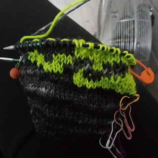 Grows into a triangular or asymmetrical shawl (depending on the evolution of the challenge)