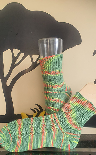 Die Anleitung ist für das Bündchen und das Muster und beginnt wie immer und gewohnt mit Nadel 4. Ferse und Spitze können nach Belieben gestrickt werden.